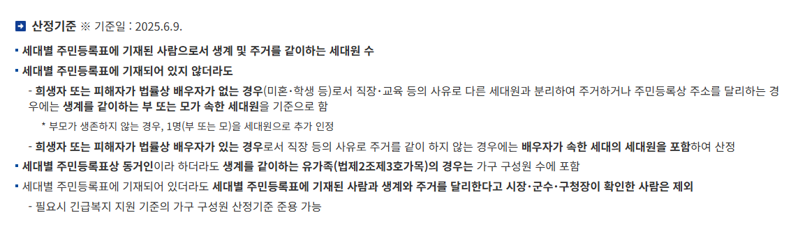 따라서 생존 피해자 본인은 물론, 그와 함께 거주 중인 가족들도 지원 대상이 됩니다.