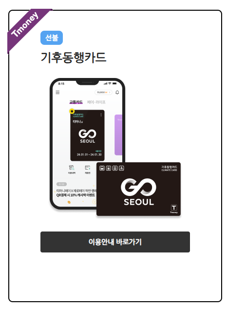 기존에선 선불형 카드만 제공되었지만, 현재는 후불형 신용카드 기반의 기후동행카드도 발급가능합니다.