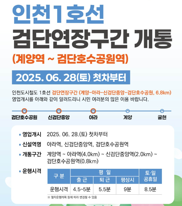 2025년 6월 28일 인천도시철도 1호선 검단 연장선의 정식 개통은 단지 철도 연장만이 아닙니다. 이는 검단의 교통, 생활, 일상에 직결되는 변화이며, 인천 전역에 긍정적인 파급 효과를 줄 것입니다.
