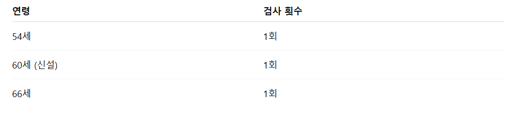 2025년부터는 기존 검진 항목 외에도 다음과 같이 대상 연령 확대및 새로운 항목추가가 이루어졌습니다.