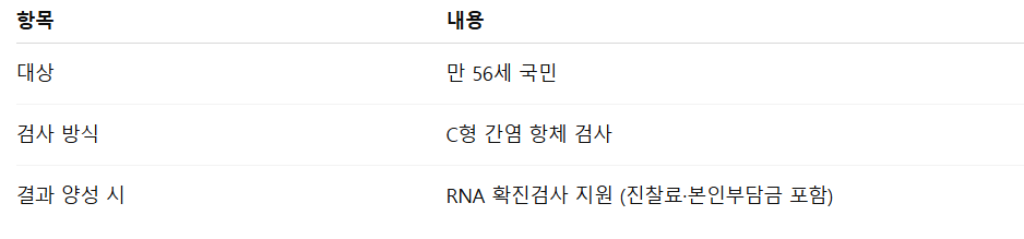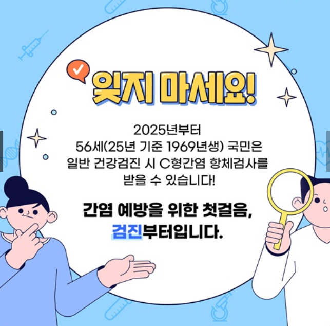 2025년부터 만 56세 국민을 대상으로 C형 간염 항체 검사가새롭게 도입됩니다.