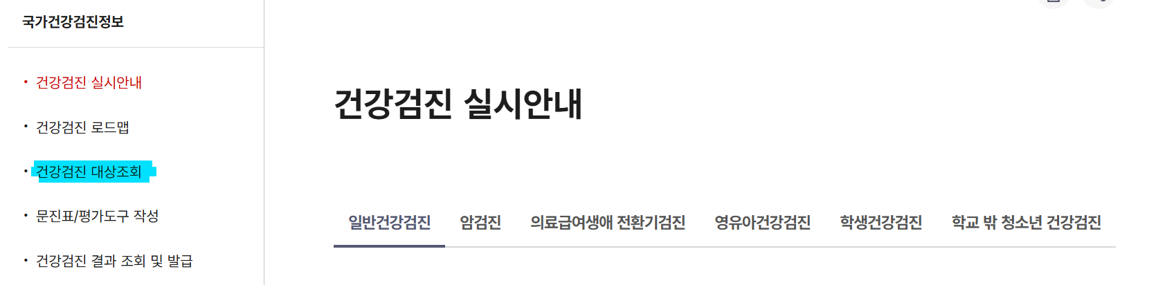 국가검진 대상자 조회 방법