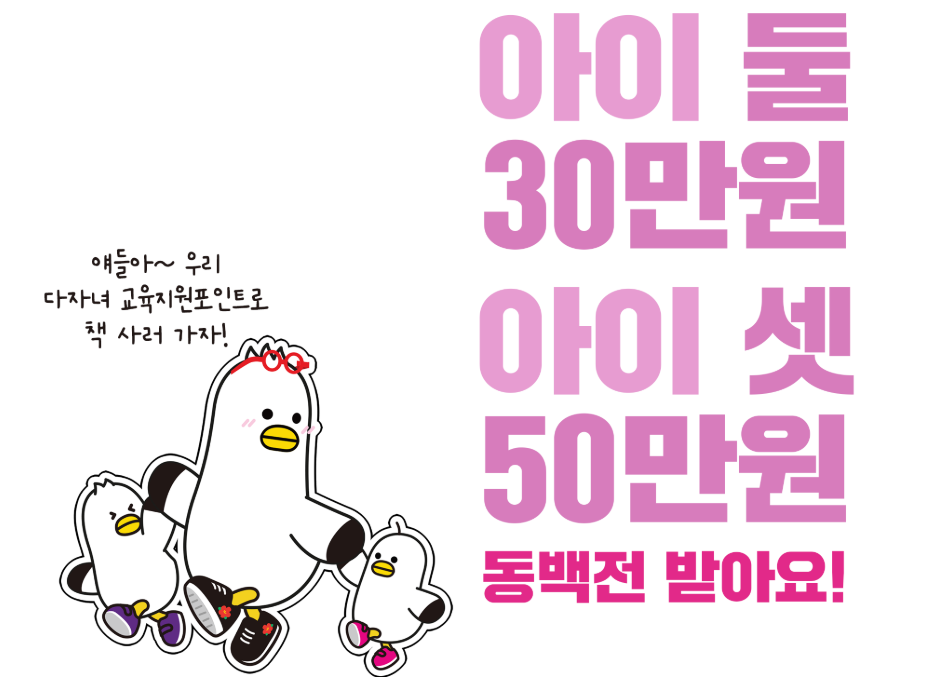 부산 다자녀 교육지원포인트는 단순히 금전적 지원을 넘어서, 다자녀 가정이 교육에서 소외되지 않도록 하는 교육 기회의 균형장치로 가능합니다.