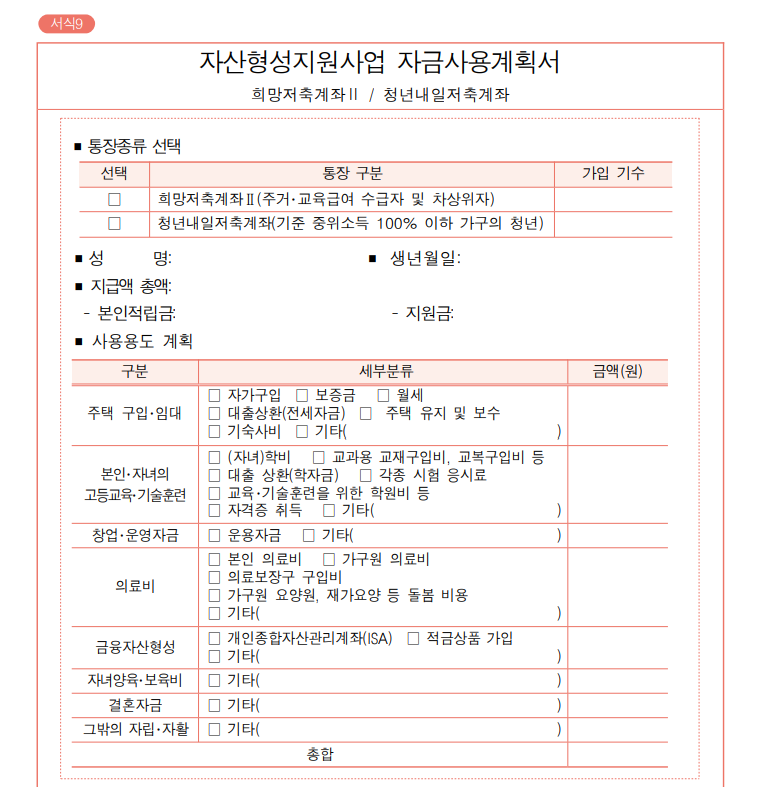 자금사용계획서는 형식이 복잡하지 않으며, 예를 들어 자녀교육비, 전세보증금 마련, 창업 자금 등 현실적인 목적이면 충분합니다.