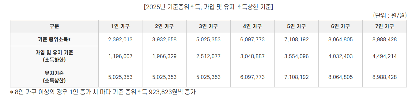 소득 인정액이 기준 중위소득 50% 이하여야 합니다.