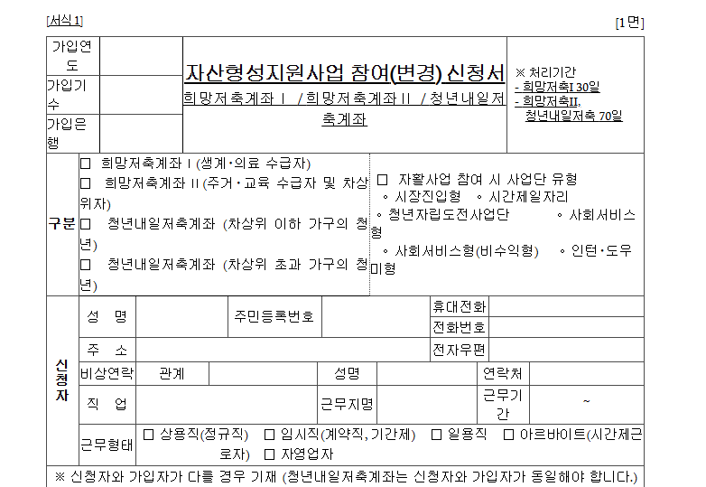 신청을 위해서는 수급자 유형도 적절해야합니다. 이번 희망저축계좌Ⅱ모집대상은 주거급여 수급자, 교육급여 수급자, 그리고 기타 차상위계층에 해당하는 가구입니다. 이들 가구는 일정 수준이하의 소득을 유지하면서 근로 활동을 하고 있는 경우 신청자격이 주어집니다. 반면, 생계급여나 의료급여 수급자는 해당제도가 아닌 희망저축계좌Ⅰ의 대상자에 해당하므로, 이번 모집에는 신청할 수 없습니다. 본인이 어떤 급여를 수급하고 있는지 헷갈린다면 주민센터에 문의하세요.