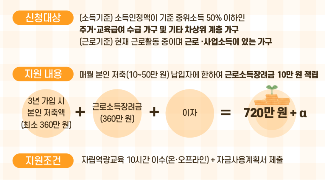 3년동안 꾸준히 저축하고 자립역량교육과 자금사용계획서만 성실히 준비하면, 최대 1,000만원 이상의 실현 가능한 목돈을 만들 수 있습니다. 정부가 현금성 지원을 매달 제공하는 제도는 매우 드물며, 특히 근로 중인 저소득층에게는 최고의 기회라 할 수 있습니다.