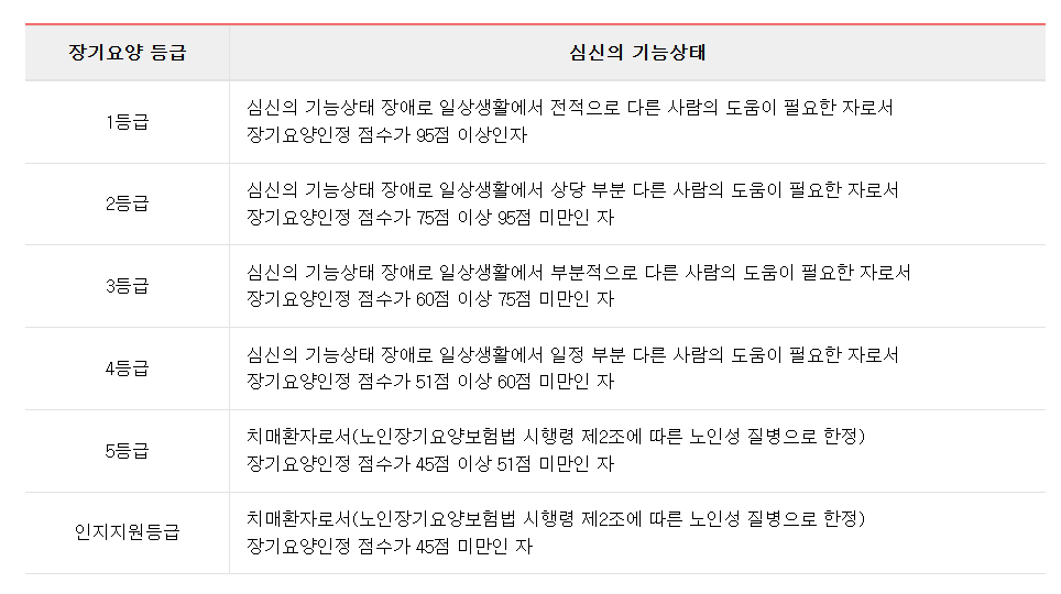 장기요양등급 기준, 확인방법
