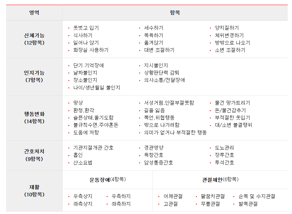 이 조사는 일상생활에서 어느 정도 도움이 필요한지, 식사목욕보행 등 기본적인 활동이 얼마나 가능한지를 확인하는 과정입니다. 이와 함께 병원에서 제출한 의사소견서도 함께 검토하게 됩니다.