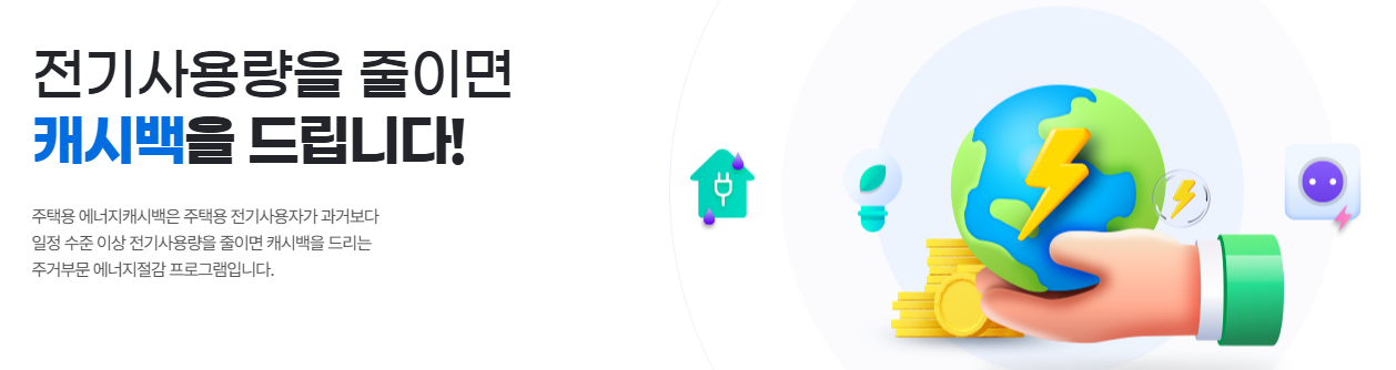 전기요금 인상이 일상화된 지금, 가정의 전력사용을 줄이면서 동시에 요금 부담을 덜 수 있는 제도가 있다는 사실, 알고 계셨나요 ? 한국전력이 운영 중인 주택용 에너지캐시백 제돈느 바로 그런 소비자를 위한 맞춤형 인텐시브 프로그램입니다.