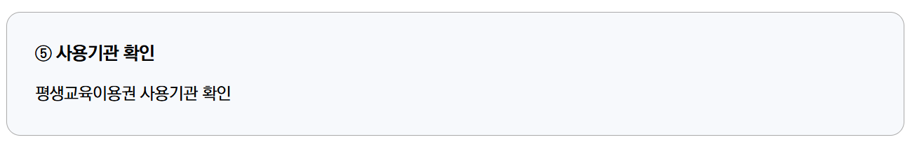 단, 해당기관이 평생교육이용권 사용기관으로 등록되어 있어야 하며, 사용처는 다음 경로로 확인 가능합니다.
