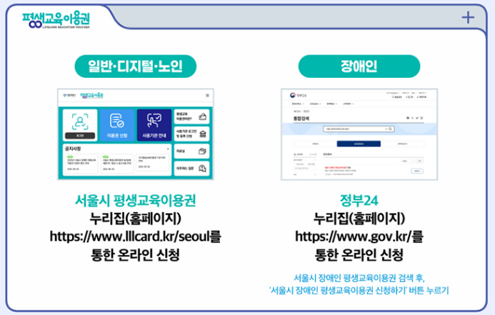 2025년 평생교육이용권 신청은 유형에 따라 접수 경로가 다릅니다.