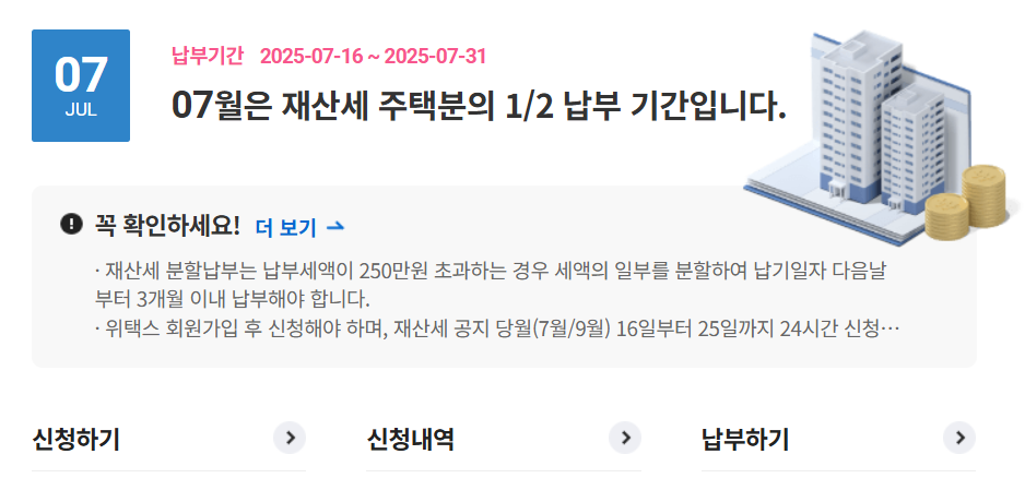 2025년 7월 정기분 재산세 고지서를 발송하고, 본격적인 납부 가간에 돌입했습니다.