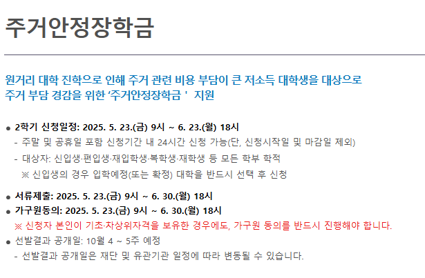 주거안정장학금은 기초·차상위계층 대학생의 주거비 지원