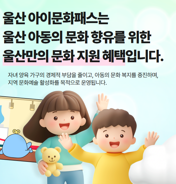 울산아이문화패스는 울산시가 2025년부터 본격적으로 시행하는 아동문화예술 활동 지원사업입니다.
