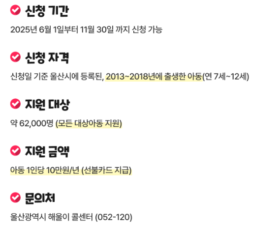 울산에 주소를 둔 초등학생이라면 누구나 대상이 되는 만큼, 매우 포괄적인 정책입니다.
