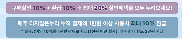 디지털 온누리상품권은 본래 10% 할일된 가격으로 구매 할 수 있습니다. 예를 들어 10만원권 상품권을 9만원에 살 수 있는 구조입니다. 여기에 결제액의 10% 환급이 추가로 제공되므로, 실질적으로 최대 20% 할인 효과를 누릴 수 있습니다.